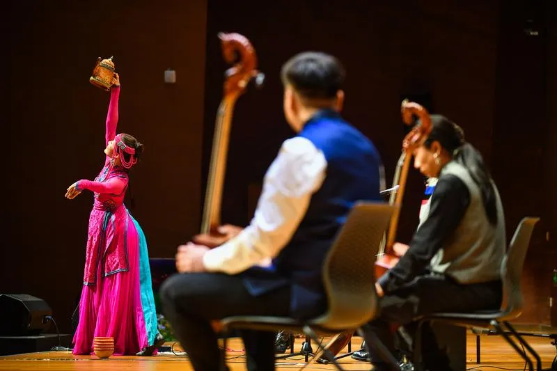 پاکستان میں چین کے سفیر جیانگ زائے دونگ(دائیں سے تیسرے) اسلام آباد میں چینی زبان کے تقریری مقابلے کے بعد ایک طالبہ کو شیلڈ دے رہے ہیں-(شِنہوا)